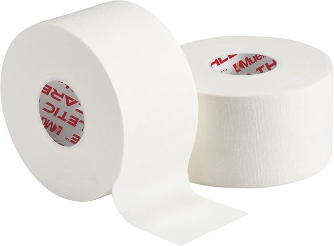 • (1) elastic Bandage roll, (1) glove canister, (3) pair exam Gloves, (1) muellerkold instant cold pack, (1) M wrap roll, (1) 1.5" M tape roll, (1) tape tote.