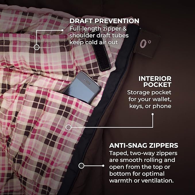 • SLEEP COMFORTABLY: You'll forget you're camping with these comfortable sleeping bags! With a soft poly-flannel lining and plenty of room to spread out. The half-circle mummy-style hood keeps you warm and your pillow clean