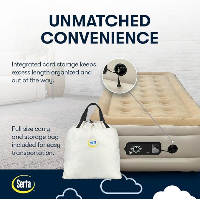 Serta Raised Air Mattress with Never Flat Pump | Luxury Inflatable Mattress with Built in Air Pump to Ensure a Good Night’s Rest | Heavy Duty Blow Up Mattress with Self Inflating Pump