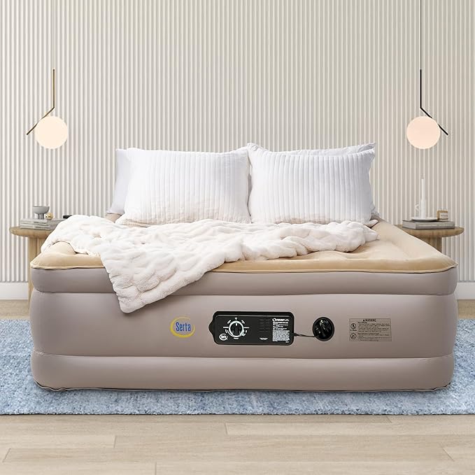 Serta Raised Air Mattress with Never Flat Pump | Luxury Inflatable Mattress with Built in Air Pump to Ensure a Good Night’s Rest | Heavy Duty Blow Up Mattress with Self Inflating Pump