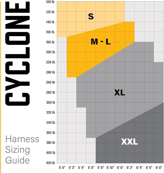 Guardian 21046 Cyclone Construction Harness with Comfort Shoulder Padding |Quick Connect Leg|OSHA & ANSI Compliant | Black/Yellow | M-L