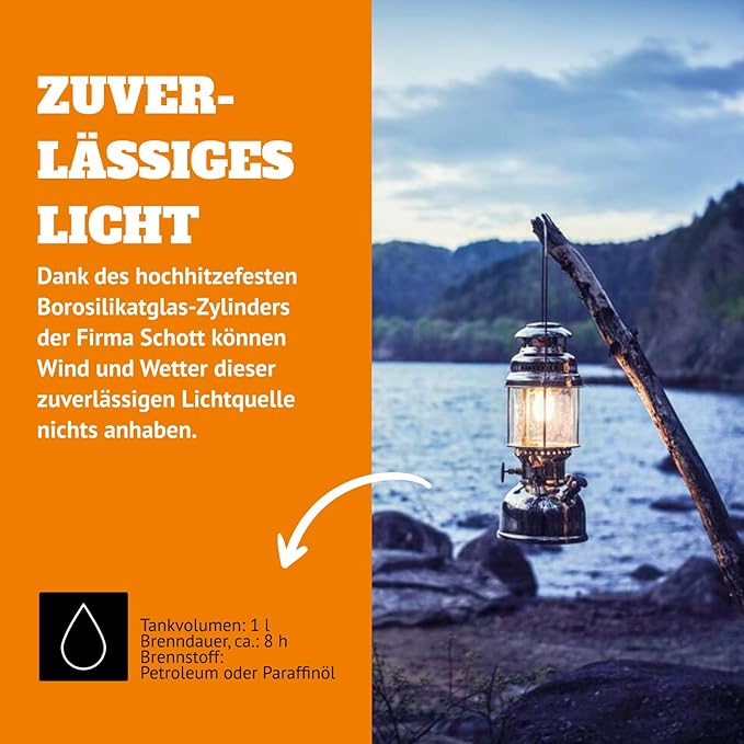 • Designed in 1910, the elegant high pressure Petromax HK500 fuel lantern has become one of the most famous lamps in the world