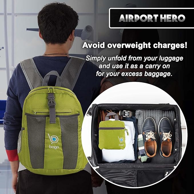 bago Lightweight Small Hiking Backpack for Women and Men - 25L Travel Day Pack - Foldable Hiking Daypack Ultralight for Camping Outdoor Sports - Day Bag Packable Backpack for Travel (Green)