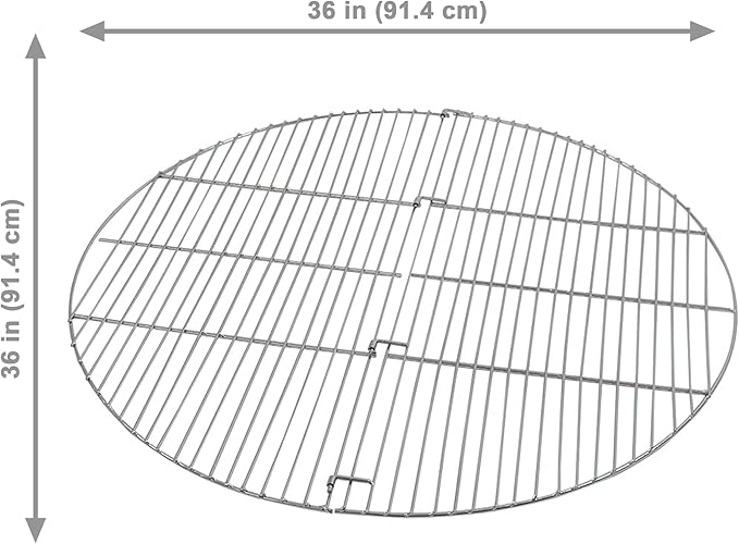 • GENEROUS SIZE: This folding grill grate measures 36" in diameter x 0.25" thick and weighs 6 lbs. It can hold up to 30 lbs of food. Use this grate on fire pits and rings in the yard, at camp, or the cabin.