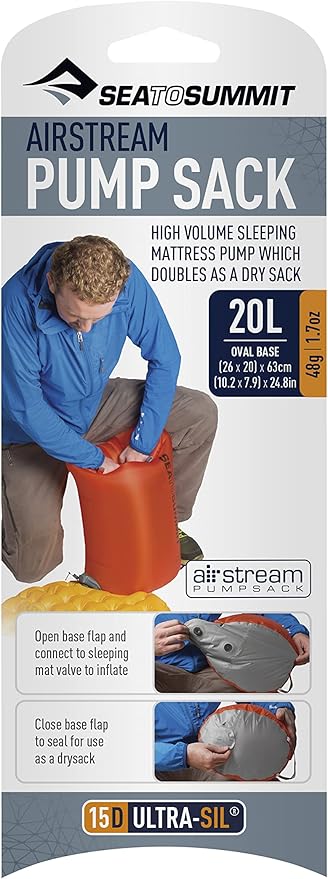 • Inflates Sea to Summit air mats with just two to three cycles of air; can also be used as dry storage inside a pack