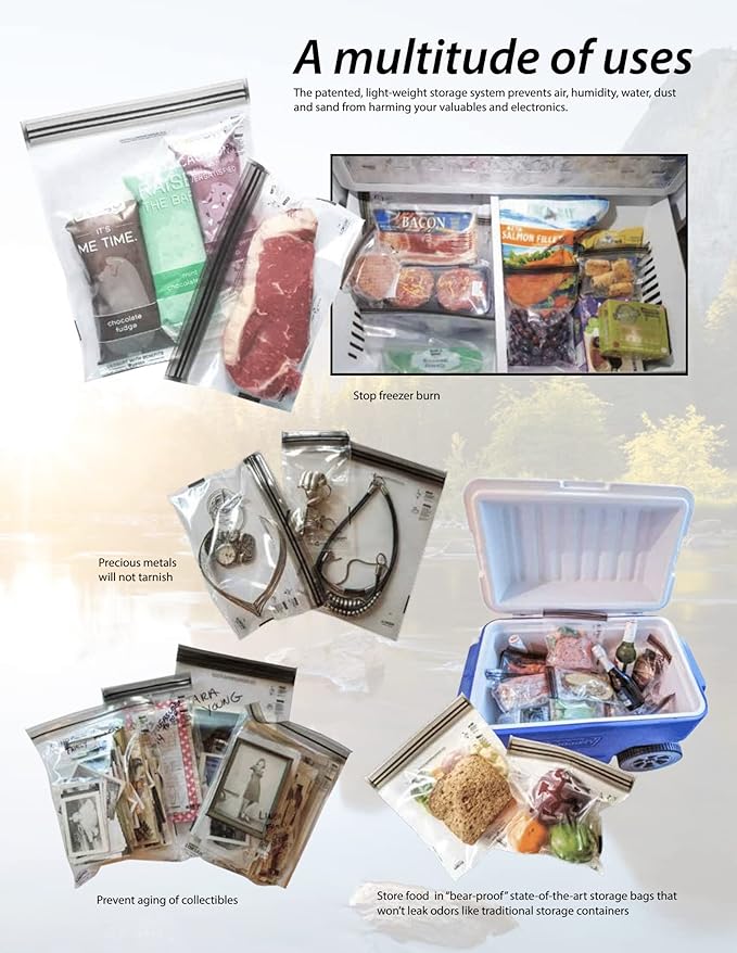 • Multiple Reusable Bags: Flexible, resealable bag provides unparalleled protection from environmental damage to electronics, personal items, and firearms.