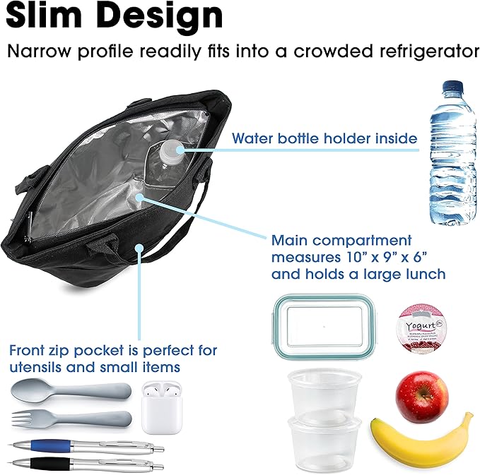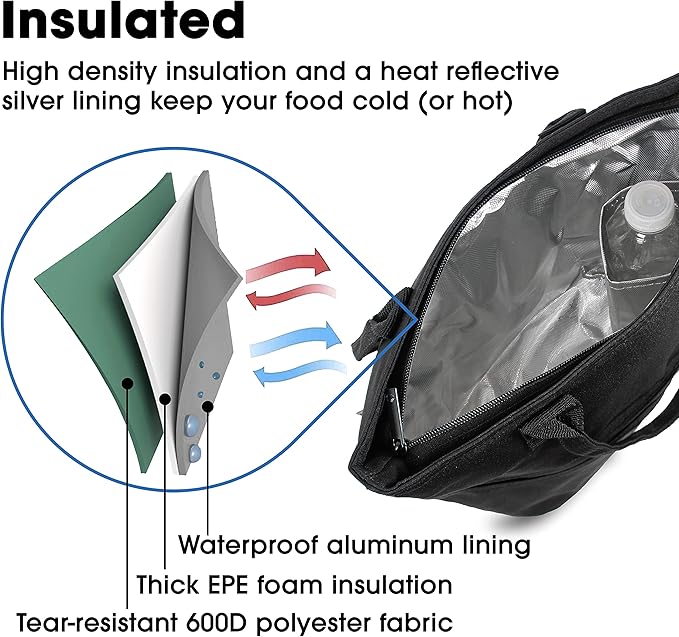 • Insulated — High density insulation and a heat reflective silver lining keeps your food cold (or hot) in this thermal lunch bag