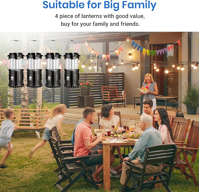 Etekcity Camping Lanterns for Power Outages 4 Pack, Flashlight for Camping Essentials, Emergency Led Battery Operated Lights, Survival Kit and Gear for Hurricane, Black
