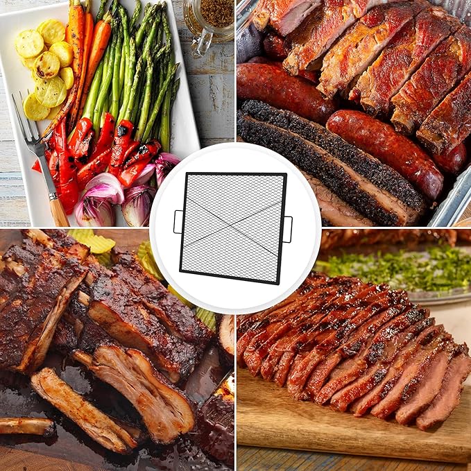 • 【Tight Mesh Design】The fire pit grill grate is designed with a small diamond-shaped mesh pattern, you don't need to worry about food through the holes. In addition, the "X-marks" style creates a delicious-looking sear on your meat and vegetables.