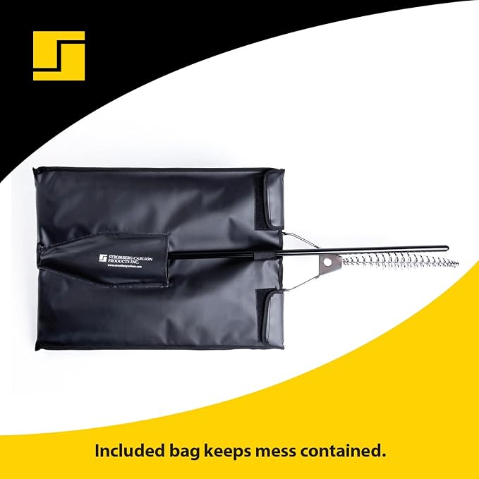 • WELL-DESIGNED OPEN FIRE GRILL: Stromberg Carlson Stake & Grill is designed for the specific needs of campers and outdoor adventurers. Made to be used for open pit or campfire cooking, our grate has up-turned edges so that hotdogs and other food will not easily roll or fall off grill. It also has a wire handle as an insulation from heat. We included a nylon bag to contain the mess; simply carry it wherever your adventure takes you.