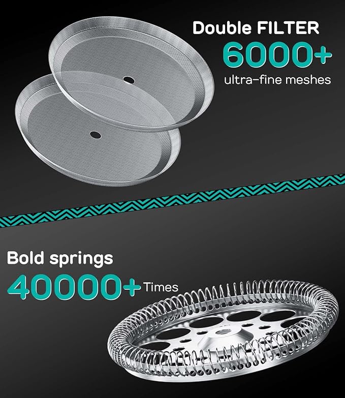 • Unique & next level design, The coffee french press is uniquely designed to keep sediment out of your cup while letting the delicious coffee oils into it. This results in a richer, full-bodied brew that will leave you grinning from ear to ear