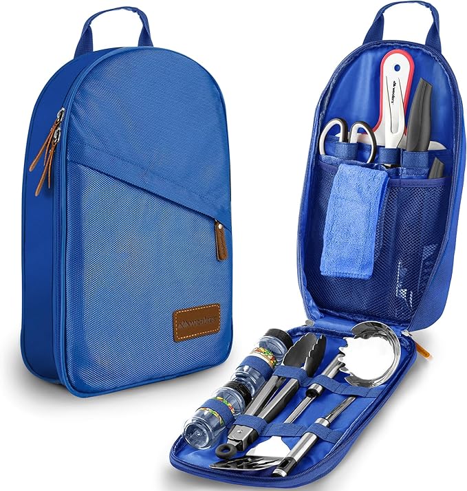 Camp Kitchen Cooking Utensil Set Travel Organizer Grill Accessories Portable Compact Gear for Backpacking BBQ Camping Hiking Travel Cookware Kit Water Resistant Case