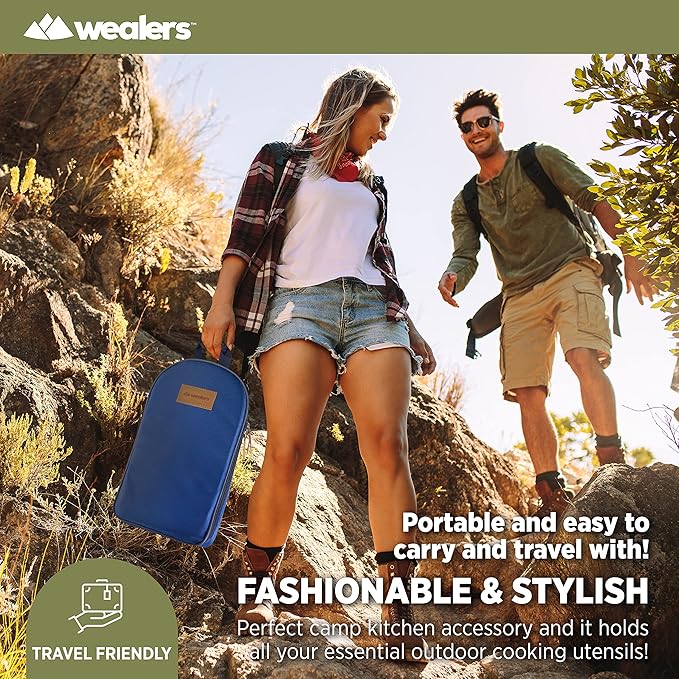 • MULTIPURPOSE: The trendy kit can be used for multiple applications, perfect for concerts, sporting events, hiking, boat rides, mountaineering and BBQ’s. The weather retardant the travel utensil kit is the perfect camp kitchen accessory, and it holds all your essential outdoor cooking utensils.