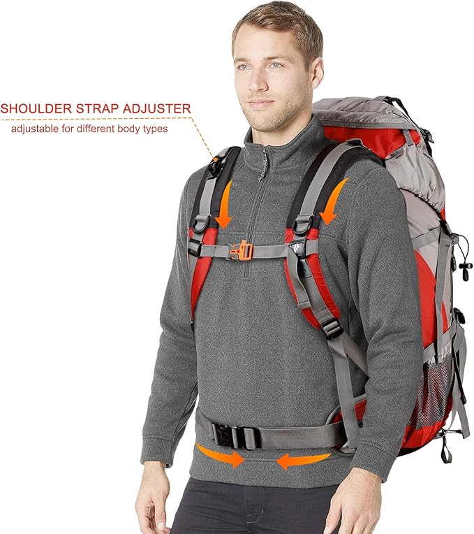 • No Internal Frame - This lightweight & comfortable hiker backpack is specially designed for outdoor enthusiasts. Breathable mesh shoulder straps with plentiful sponge padding help relieve the stress from your shoulder. Widened and thickened S-type shoulder straps and high elastic breathable back support for best ventilation and easing burden, gives you more comfortable experience.