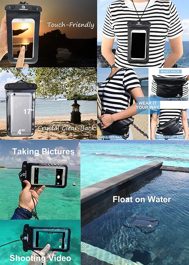 • PROTECT YOUR CELL PHONE AND MAKE THE MOST OF YOUR WATER SPORT ACTIVITIES: This set also includes a must have IPX8 Certified Waterproof Phone Case (3.9" x 6.7"). This amazing dry cell phone case features a very simple snap and lock access that has dual-sided clear windows that allow you to text, talk on the phone, take pictures and video while still inside the case. Suitable for phones up to 6.5 Inches of diagonal screen size.