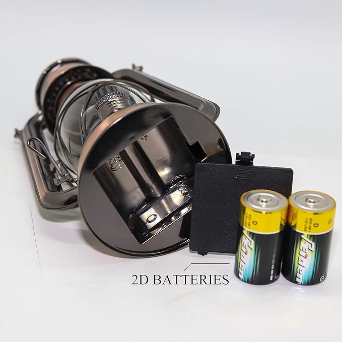 • BATTERY OPERATED: Each vintage lanterns battery powered led by 2 D batteries (not included), the battery life varies based on usage. Without wiring limited.This lantern is great useful for camping when you make your way around the campsite and your tent easily in the dark. Please note when in extreme weather conditions, the lamp should be placed indoors to prevent glass from breaking.
