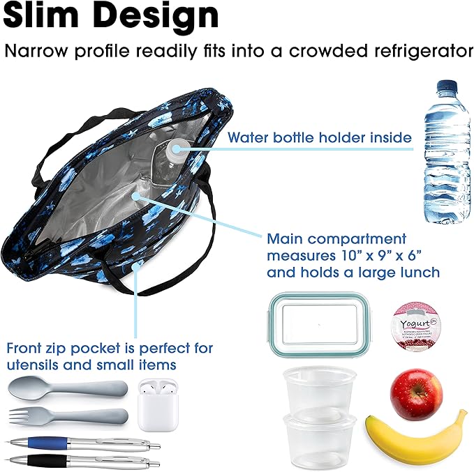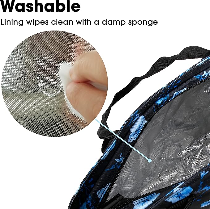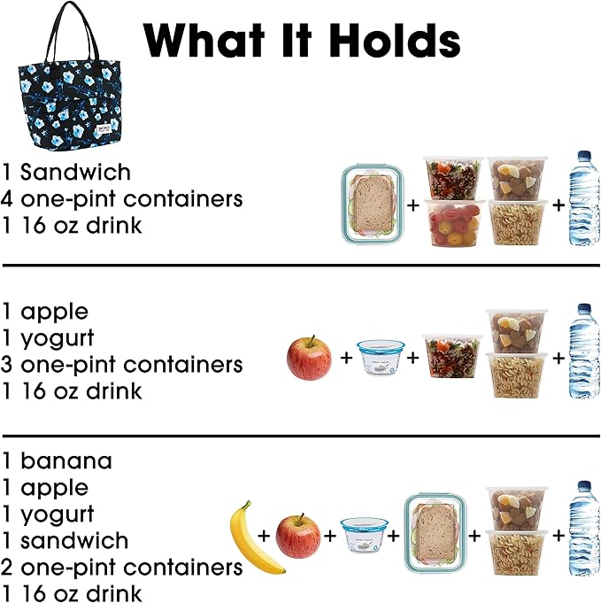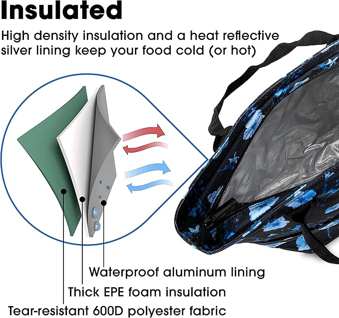 • Insulated — High density insulation and a heat reflective silver lining keeps your food cold (or hot) in this thermal lunch bag