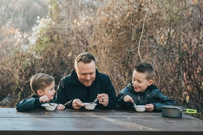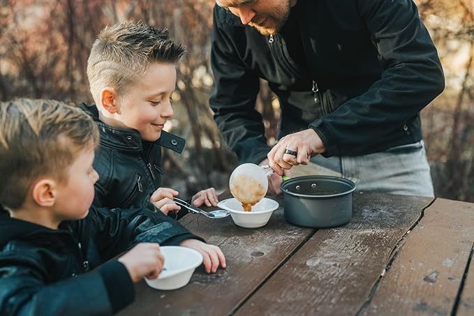 • BUILT TO LAST! Highest Quality Non-Toxic Anodized Aluminum Camping Cookset conducts heat quickly and is survival gear that is built to last and is perfect size for 1 youth scout or adult hiker backpacker.