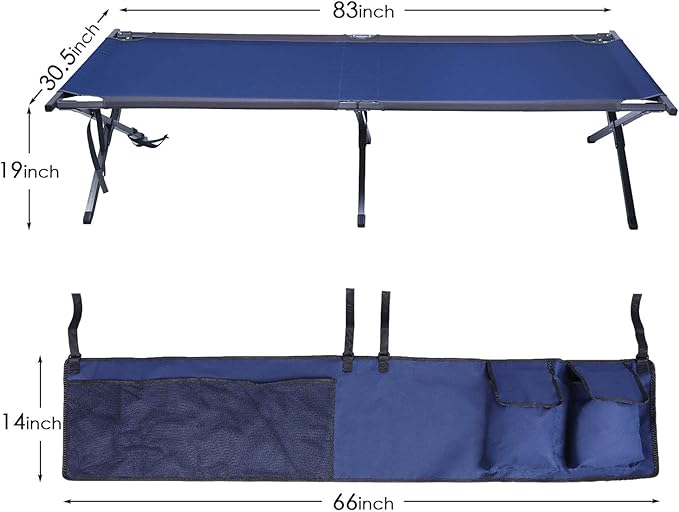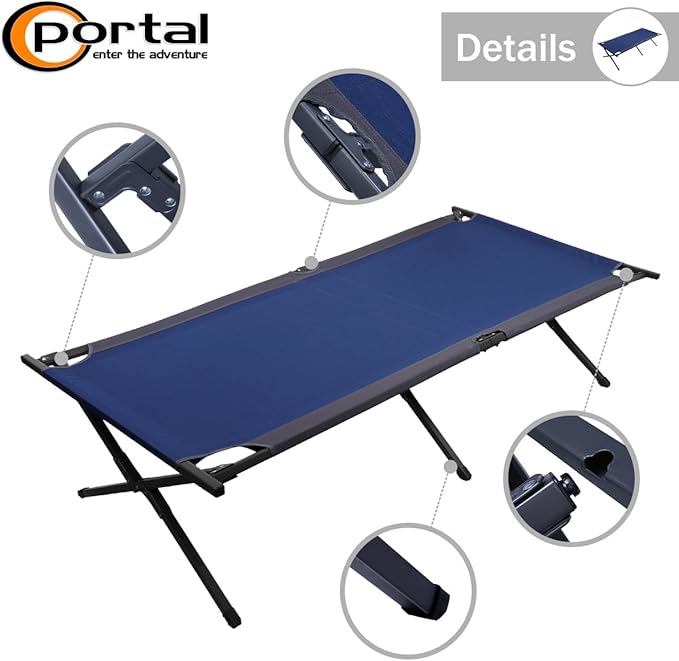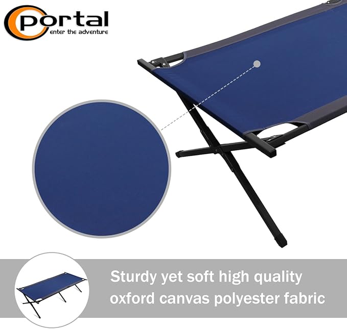 PORTAL Folding Portable Camping Cot, Guest Bed with Carry Bag and Side Storage Organizer, Camping Cots for Adults Sleeping, Away Tent Sleeping Cot Bed, Supports 300 LBS, Blue