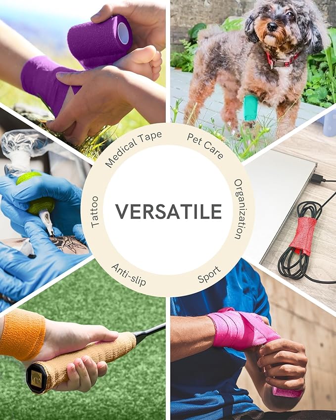 • 🌈Versatile Protection: Say hello to total care and comfort with our 12 rolls self-adhesive bandage pack. No matter the situation - sports injuries or post-surgery care - our bandage has got you covered. Offering versatile protection and unparalleled comfort, it's the ultimate solution for all your wound care needs.
