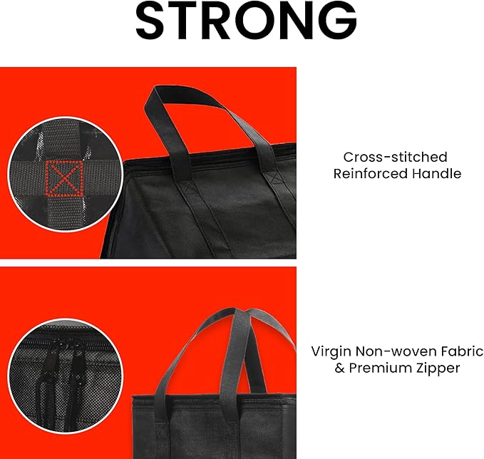 • KEEPS FOOD COLD OR HOT - Keep your food at the right temperature with our 3-layered insulated carrier. Perfect for food delivery, grocery shopping, catering, or any time you need to transport hot or cold items.