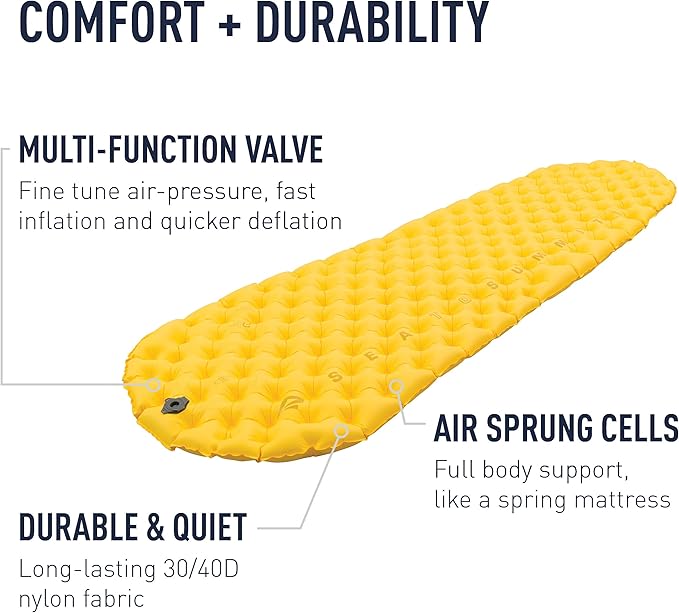 • Air Sprung Cell construction mimics a spring mattress, maintaining more body contact area and even dispersion of pressure for restful backcountry slumber