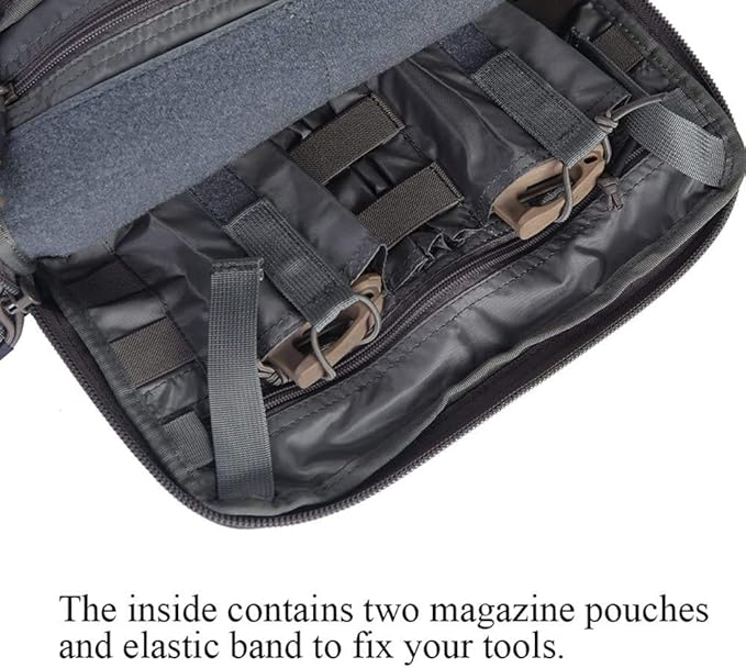 • MULTI-FUNCTIONAL: It works great as a fast access chest pack for often used items when backpacking.The mesh internal divider holder can hold 2 pcs 5.56 mags,and other accessories.With front molle system allow for attaching it to MOLLE system. It can be used as harness chest pack, fishing chest pouch, running chest bag.