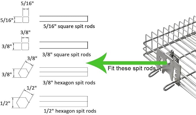 • 【Compatible Models】Fits for 1/2" hexagon, 3/8" hexagon, 3/8" square & 5/16" square spit rods, can use on most common grills such as gas grill, charcoal grill, kamado grill. ★ It also can be sued with our 6025 Weber 22 inch rotisserie ring kit! ★