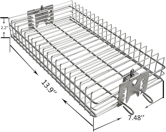 onlyfire 6042 Chrome Plating Steel Flat Grill Rotisserie Basket for Most Grills, Fits 1/2" Hexagon, 3/8" Hexagon, 3/8" Square & 5/16" Square Spit Rods