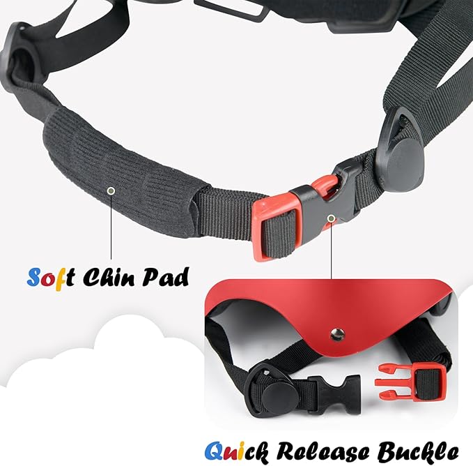 • Fully adjustable, provided by the crank adjustment dial, 2 sets of pads with different thickness, and length-adjustable chin straps
