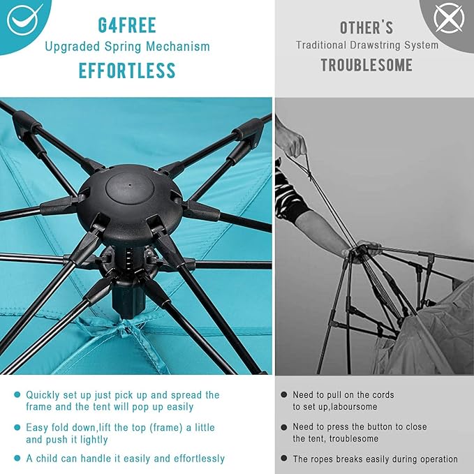 • 【Hub System Design for Easy Setup】With the new integration hub system, this beach tent can be easily set up or folded down, no need to struggle with this foldable beach sun shelter, no need to pull the string painfully. The instant pop-up beach tent is a great fit for your family's outdoor companion. Such as camping, hiking, picnic, fishing, and sporting events, and enjoy a good time with your family.