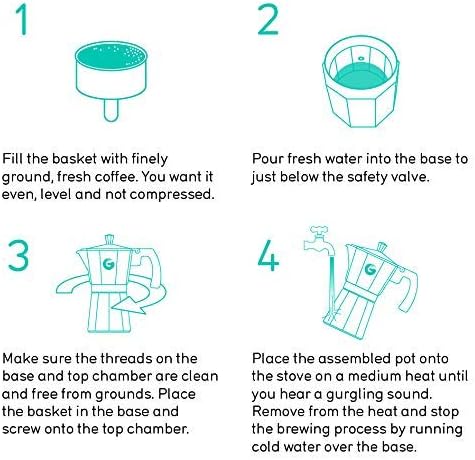 • This coffee pot makes brewing simple! Just fill the base with water, add grounds to the basket, screw on the top, and place on your hob! They're also easy to wash, simply rinse to clean - effortless espresso