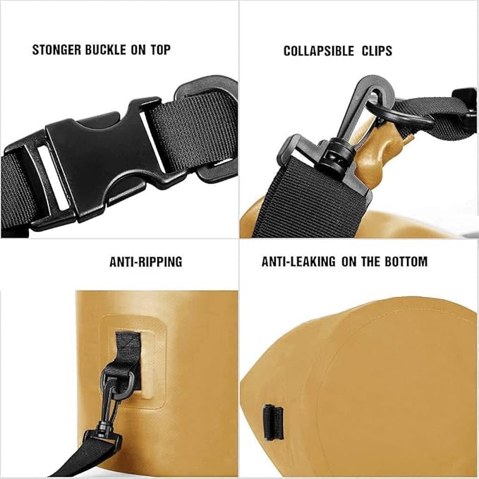 • ANTI LEAK AND ANTI TEAR: Features fully welded seams by high-frequency tech, our dry sack provides a stronger and more durably waterproof construction; Abrasion resistant for long lasting, perfect for boating, fishing, paddling, swimming and hiking