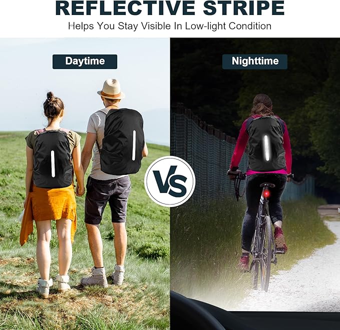 • [Rain cover for backpack]: Don't let a drop of water in. It can resist water of 2000mpa hydraulic pressure rate. Strap around middle of bag is excellent feature to secure in wind, 1 storage bag for easy carrying out