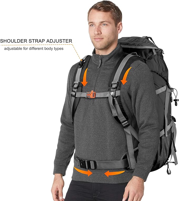 • No Internal Frame - This lightweight & comfortable hiker backpack is specially designed for outdoor enthusiasts. Breathable mesh shoulder straps with plentiful sponge padding help relieve the stress from your shoulder. Widened and thickened S-type shoulder straps and high elastic breathable back support for best ventilation and easing burden, gives you more comfortable experience.