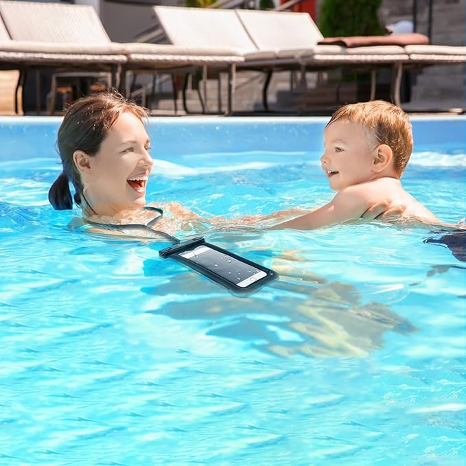 • Universal Size - Compatible with iPhone 12/iPhone 13/iPhone 12 pro max/iPhone 13 pro max/SE 3. Fits devices up to 7 inch diagonal with extra space for credit card, ID, cash, coins. Easy access for beach, swimming, fishing, sailing, kayaking, snorkeling and water park activities.