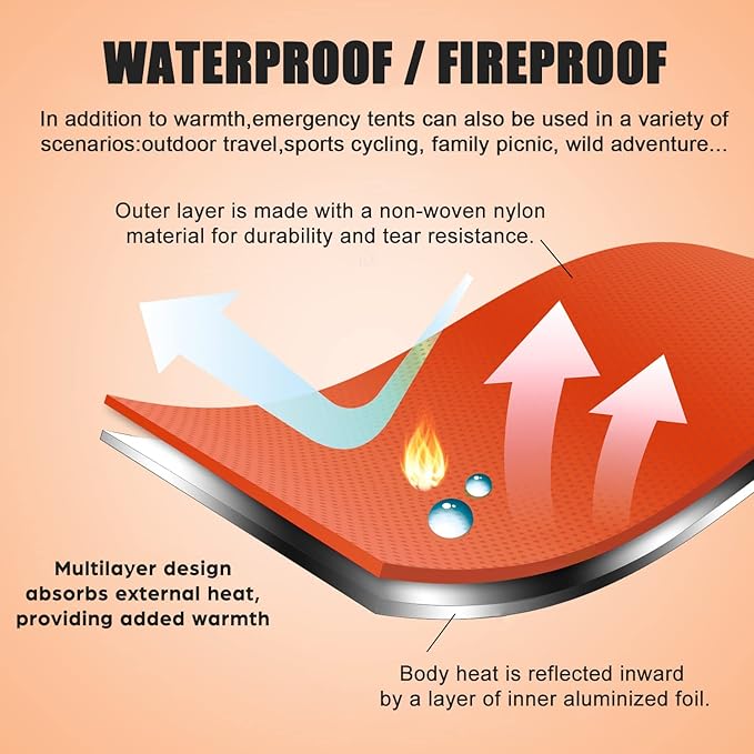 • 🌠【100% Reflection】Reflect at Least 90 Percent of Light Heat. Prevent Hypothermia to Save Your Life With Heater. Most Attrative Orange Red Color, Easy to be Found in the Wild.