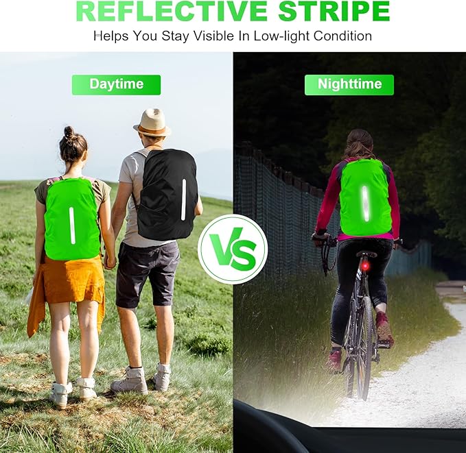 LAMA 2pcs Waterproof Rain Cover for Backpack, Reflective Rainproof Protector for Anti-dust and Anti-Theft S 18L-25L Black Green