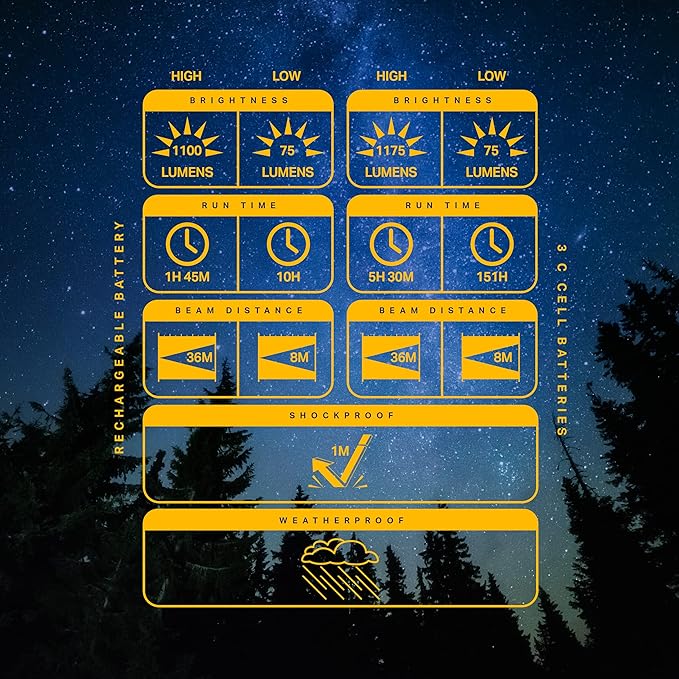 • DUAL BATTERY DESIGN – RECHARGEABLE OR ALKALINE: The dual battery design provides up to 150-hour runtime. This lantern comes with a rechargeable Li-ion battery, but can also operate with standard alkaline batteries in tandem or interchangeably; in case of an emergency. Just add 3 C Cell batteries for the extended run-time! The UL recognized 2000mAH rechargeable battery is included so start your DIY projects or camping adventures immediately!