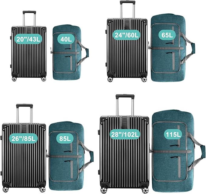 • Foldable and Spacious travel bag:The travel organizer bag can be folded into a really small size taking up so little space but opens up to have about 115L capacity of travel bags to use as a luggage bag in case that your suitcase swells. This travel duffel bag is designed to work best with bag packing cubes - to give you an organized lightweight travel experience.