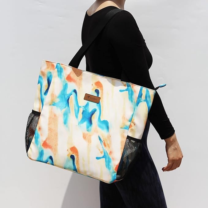 ESVAN Original Floral Water Resistant Large Tote Bag Shoulder Bag for Gym Beach Travel Daily Bags Upgraded