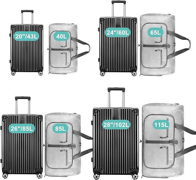 • Foldable and Spacious travel bag:The travel organizer bag can be folded into a really small size taking up so little space but opens up to have about 65L capacity of travel bags to use as a luggage bag in case that your suitcase swells. This travel duffel bag is designed to work best with bag packing cubes - to give you an organized lightweight travel experience.
