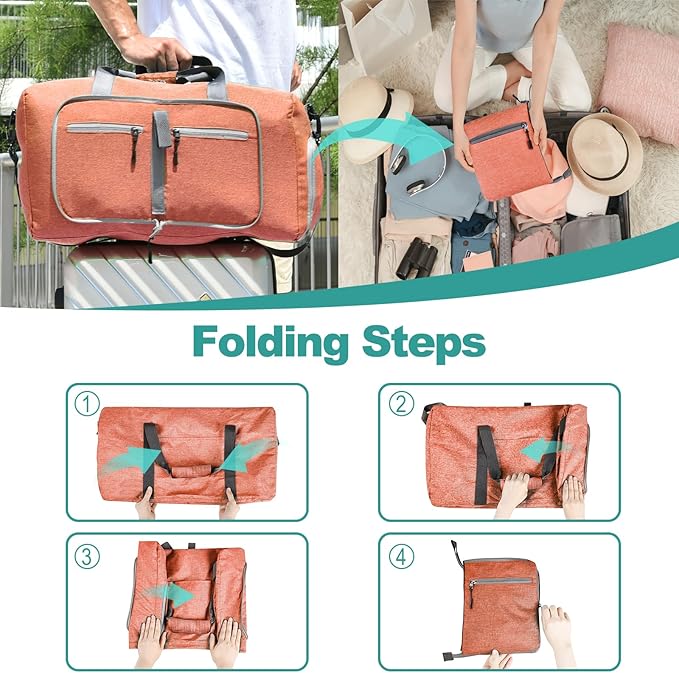 • Foldable and Spacious travel bag:The travel organizer bag can be folded into a really small size taking up so little space but opens up to have about 85L capacity of travel bags to use as a luggage bag in case that your suitcase swells. This travel duffel bag is designed to work best with bag packing cubes - to give you an organized lightweight travel experience.