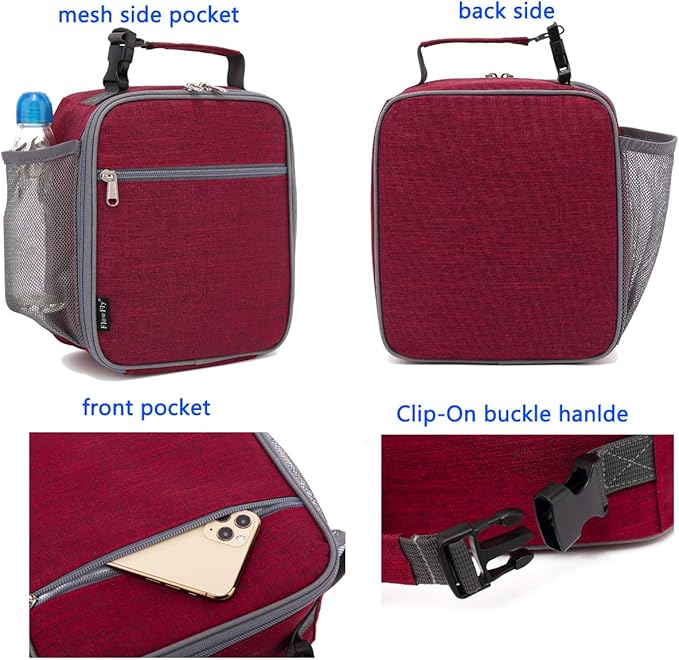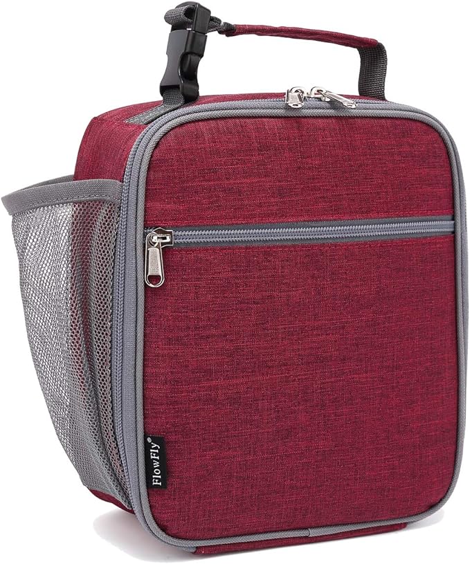 FlowFly Kids Lunch box Insulated Soft Bag Mini Cooler Back to School Thermal Meal Tote Kit for Girls, Boys, Red