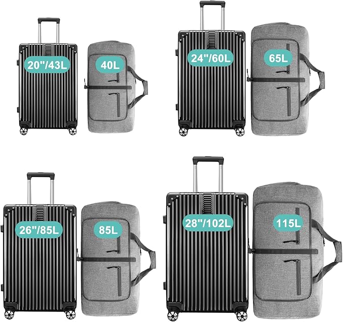 • Foldable and Spacious travel bag:The travel organizer bag can be folded into a really small size taking up so little space but opens up to have about 115L capacity of travel bags to use as a luggage bag in case that your suitcase swells. This travel duffel bag is designed to work best with bag packing cubes - to give you an organized lightweight travel experience.