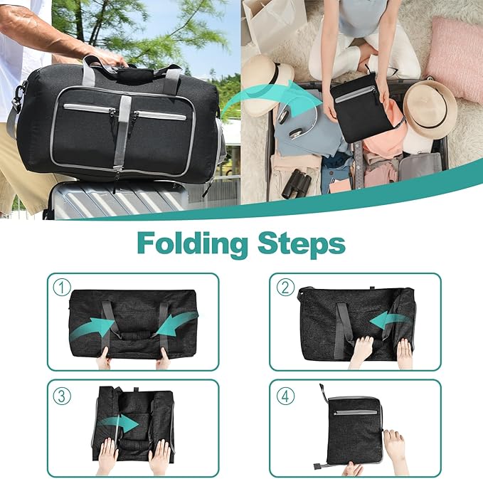 • Foldable and Spacious travel bag:The travel organizer bag can be folded into a really small size taking up so little space but opens up to have about 40L capacity of travel bags to use as a luggage bag in case that your suitcase swells. This travel duffel bag is designed to work best with bag packing cubes - to give you an organized lightweight travel experience.