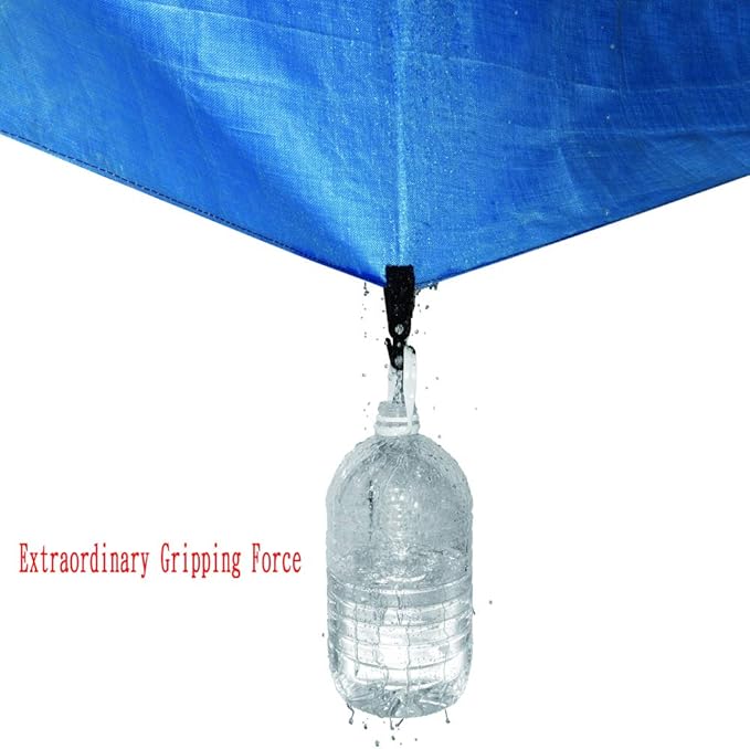 • Super Holding Power- Versatile, premium quality tarp clips with heavy-duty gripping power, the tested load-bearing of pulling force is over 100 kilograms.Not includes ropes and D-ring