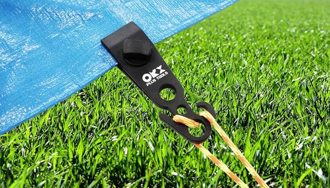 • Easy to Use- Easy to install or remove just to tighten or loosen the screw knob. The teeth inside hold the tarp tightly, but do not tear or damage it. Hook tail for rope adjusting and tightening