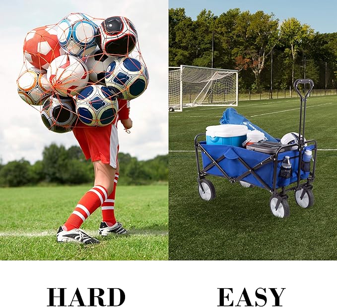 • FOLDING WAGON - Easily transport shopping bags, camping gear, landscaping supplies, or sports equipment with this foldable wagon. The utility wagon collapses in seconds with the simple pull of a tab and features 2 mesh cupholders to keep drinks handy.