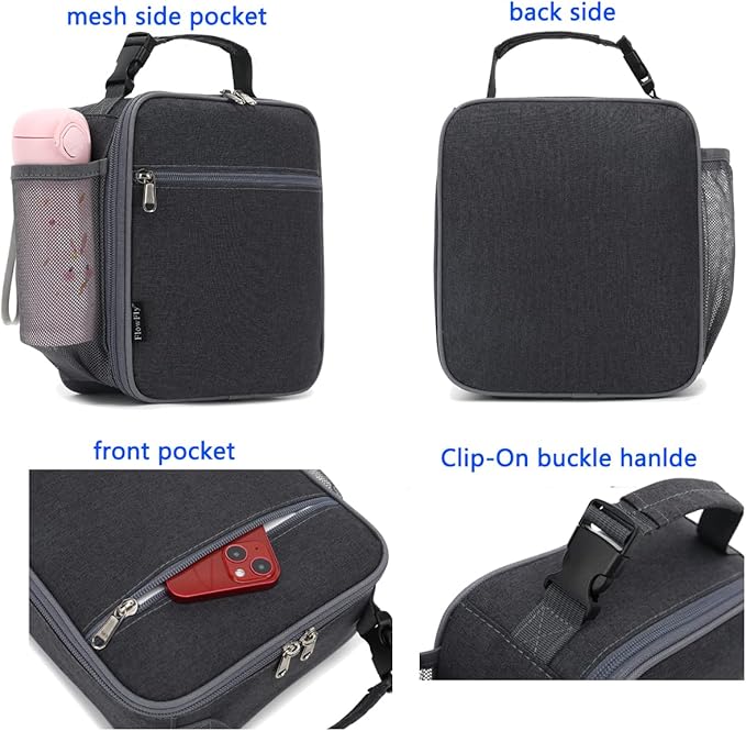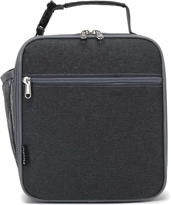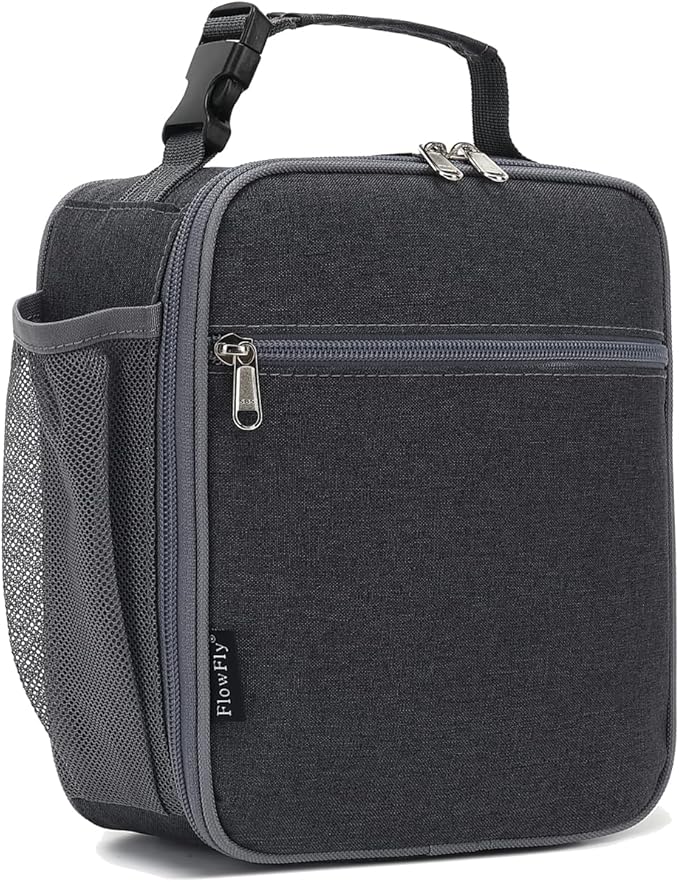 FlowFly Kids Lunch box Insulated Soft Bag Mini Cooler Back to School Thermal Meal Tote Kit for Girls, Boys, Dark